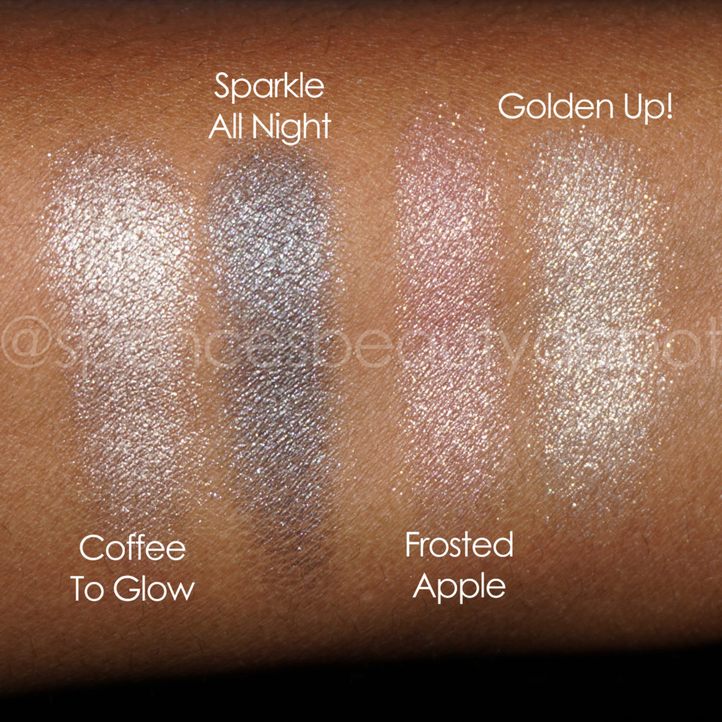 I backed in to the Essence Cosmetics display today at my local Ulta and my eyes were immediately drawn to the most shimmery, glittery eyeshadows tucked away at the bottom! There were eight on display, but only four in stock (bummer). You better believe I snatched all four! Check out my thoughts below!